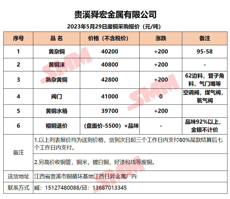 5月29日贵溪舜宏 废铜采购报价