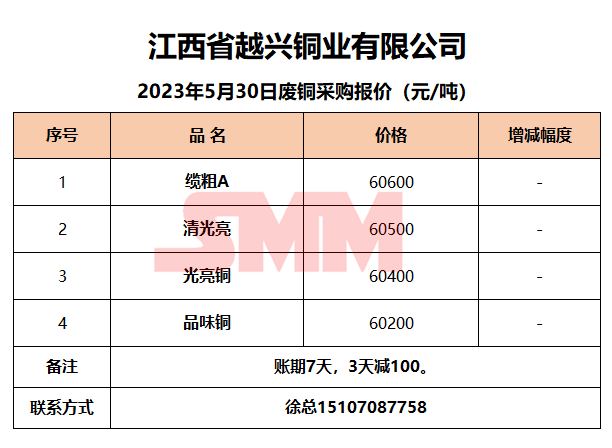 今日江西越兴,废铜采购报价已更新,有货的朋友欢迎联系我们!