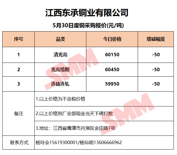 今日江西东承铜业/博升铜业 废铜采购报价已更新,有货的朋友欢迎联系我们!