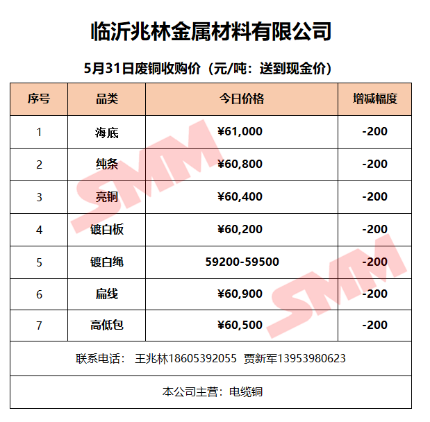 今日临沂兆林金属 ,废铜收购报价已更新,有货的朋友欢迎联系我们!