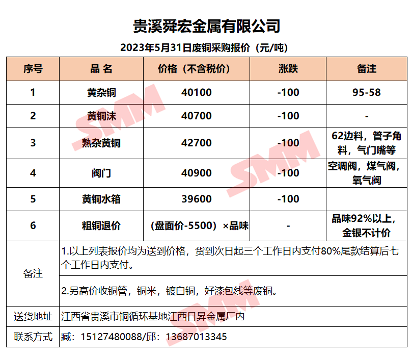 今日贵溪舜宏金属有限公司 ,废铜采购报价已更新,有货的朋友欢迎联系我们!