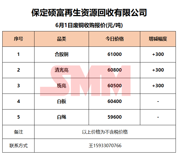6月1日保定硕富 废铜收购报价