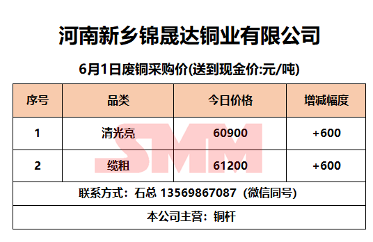6月1日河南锦晟达 废铜采购报价