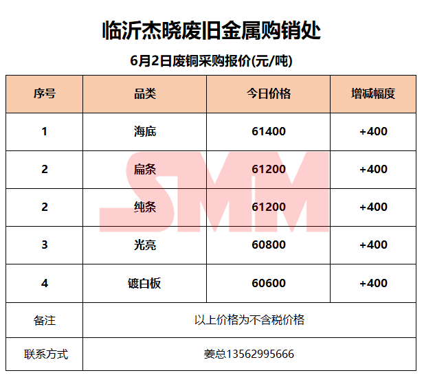 6月2日临沂杰晓 废铜采购报价