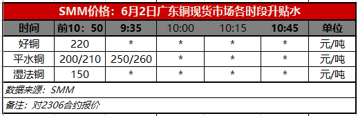 6月2日广东铜现货市场各时段升贴水(第一时段9:35)【SMM价格】