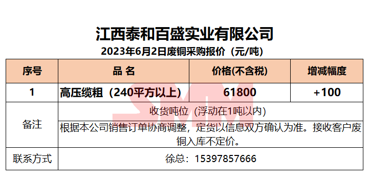 6月2日江西泰和 废铜采购报价