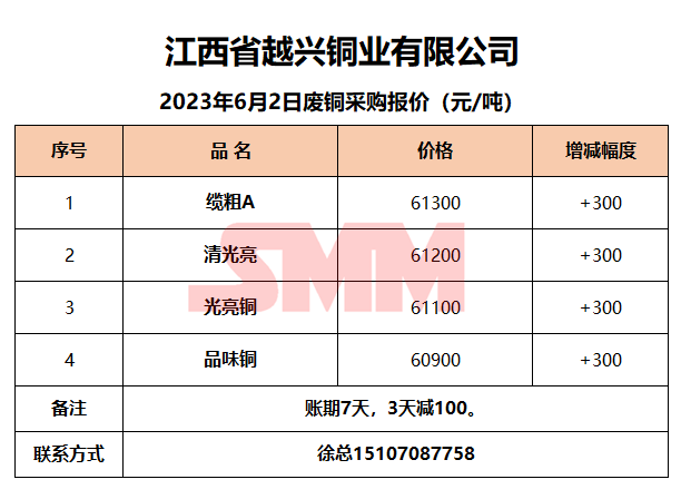 6月2日江西越兴 废铜采购报价