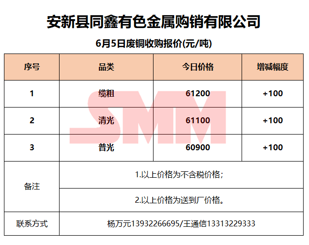 今日安新同鑫,废铜收购报价已更新,有货的朋友欢迎联系我们!