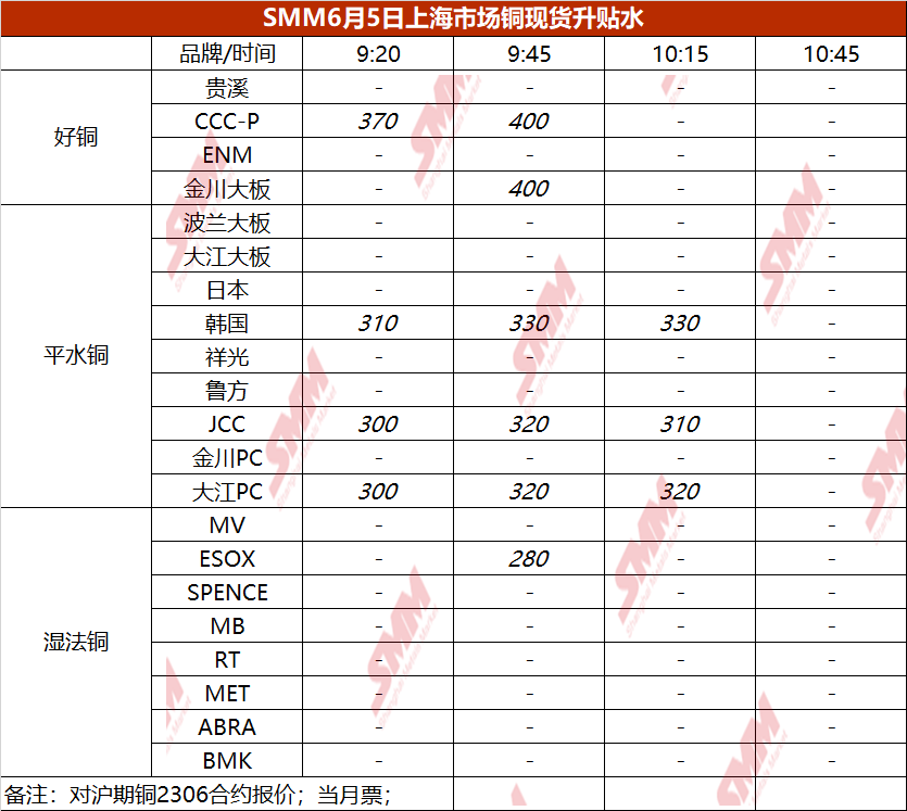 6月5日上海市场铜现货升贴水(第三时段)【SMM价格】