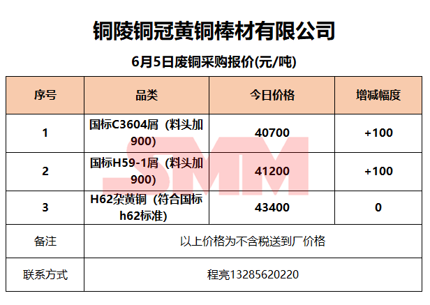 6月5日铜陵铜冠 废铜采购报价