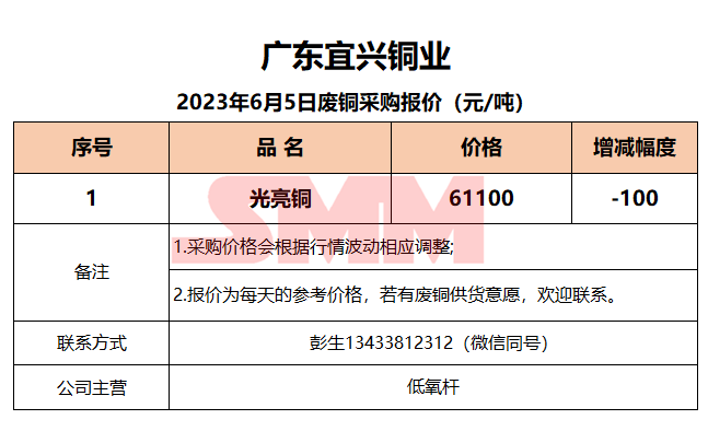 6月5日广东宜兴 废铜采购报价