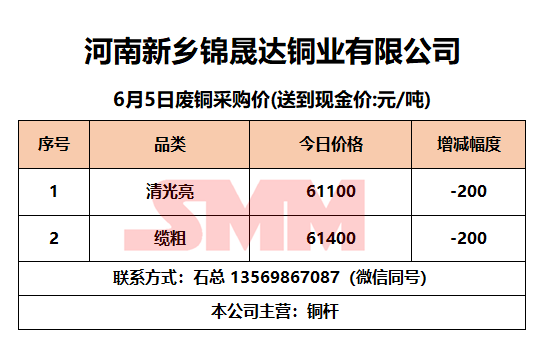 2月5日高诺(衡阳)铜业 废铜采购报价
