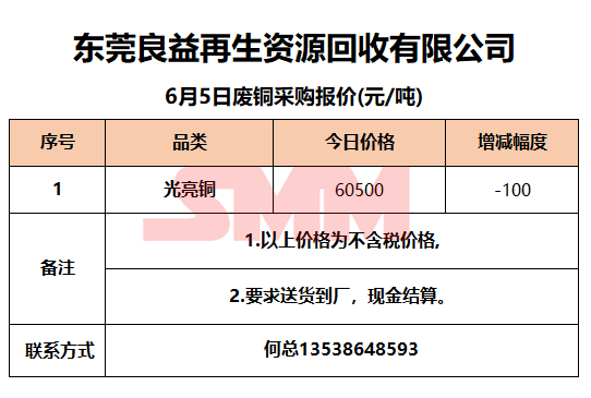6月5日东莞良益 废铜采购报价