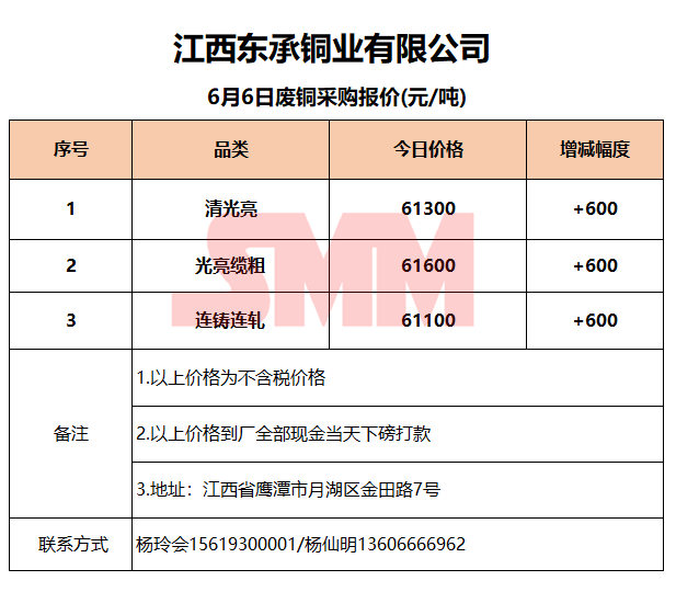 今日江西东承铜业/博升铜业 废铜采购报价已更新,有货的朋友欢迎联系我们!