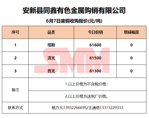 今日安新同鑫,废铜收购报价已更新,有货的朋友欢迎联系我们!