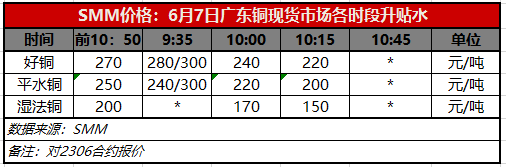 6月7日广东铜现货市场各时段升贴水(第三时段10:15)【SMM价格】
