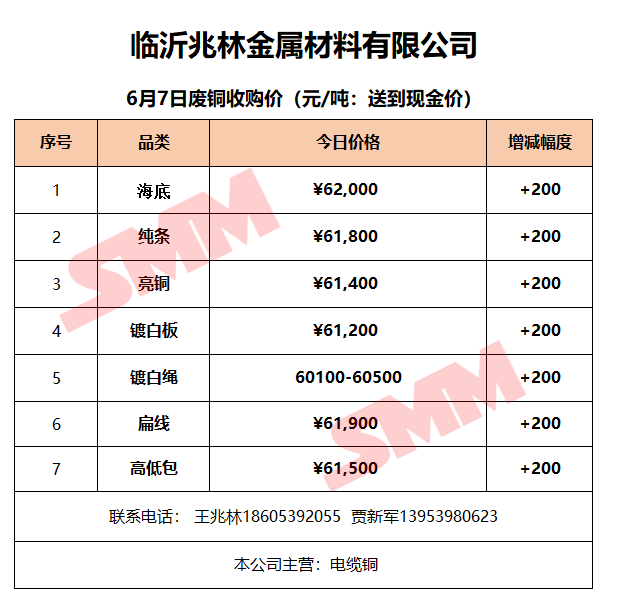 今日临沂兆林金属 ,废铜收购报价已更新,有货的朋友欢迎联系我们!
