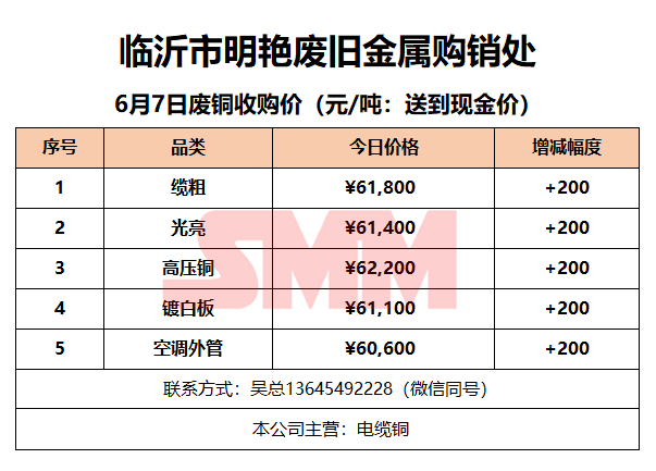 6月7日临沂明艳废旧金属 废铜收购报价