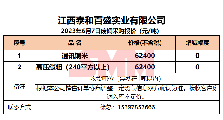 今日江西泰和百盛实业 ,废铜采购报价已更新,有货的朋友欢迎联系我们!