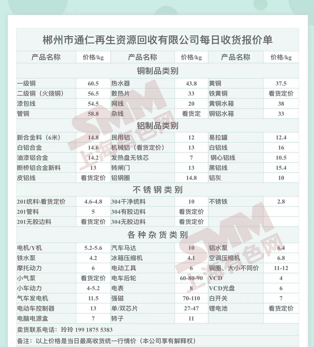 6月7日郴州通仁 废铝收购报价