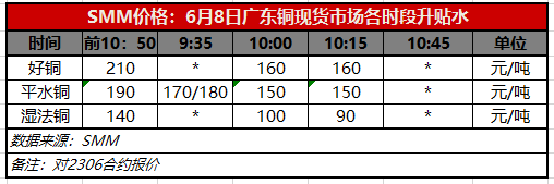 6月8日广东铜现货市场各时段升贴水(第三时段10:15)【SMM价格】