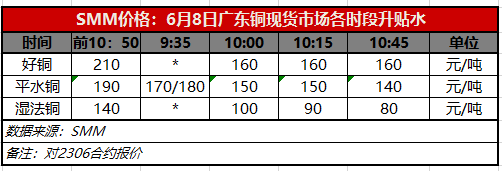 6月8日广东铜现货市场各时段升贴水(第四时段10:45)【SMM价格】