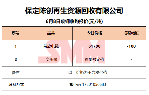 6月8日保定陈创 废金属收购报价