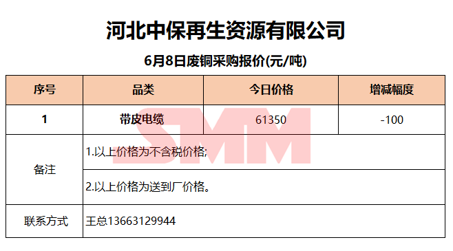 6月8日河北中保 废铜采购报价