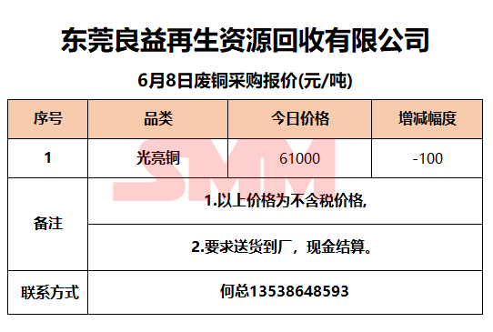 6月8日东莞良益 废铜采购报价