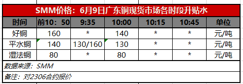 6月9日广东铜现货市场各时段升贴水(第二时段10:00)【SMM价格】
