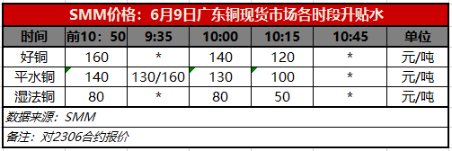 6月9日广东铜现货市场各时段升贴水(第三时段10:15)【SMM价格】