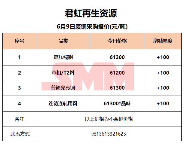 今日君虹再生资源,废铜收购报价已更新,有货的朋友欢迎联系我们!