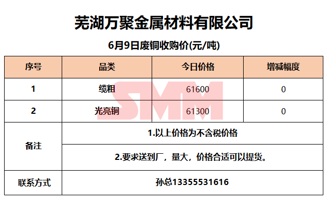 今日芜湖万聚金属,废铜收购报价已更新,有货的朋友欢迎联系我们!