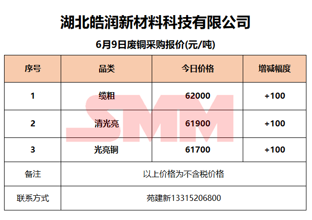 6月9日湖北皓润 废铜采购报价