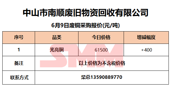 6月9日中山南顺 废铜采购报价