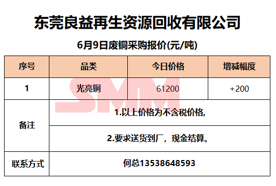 6月9日东莞良益 废铜采购报价
