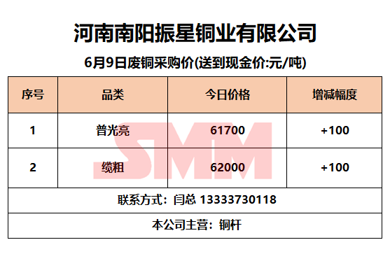 6月9日南阳振星 废铜采购报价
