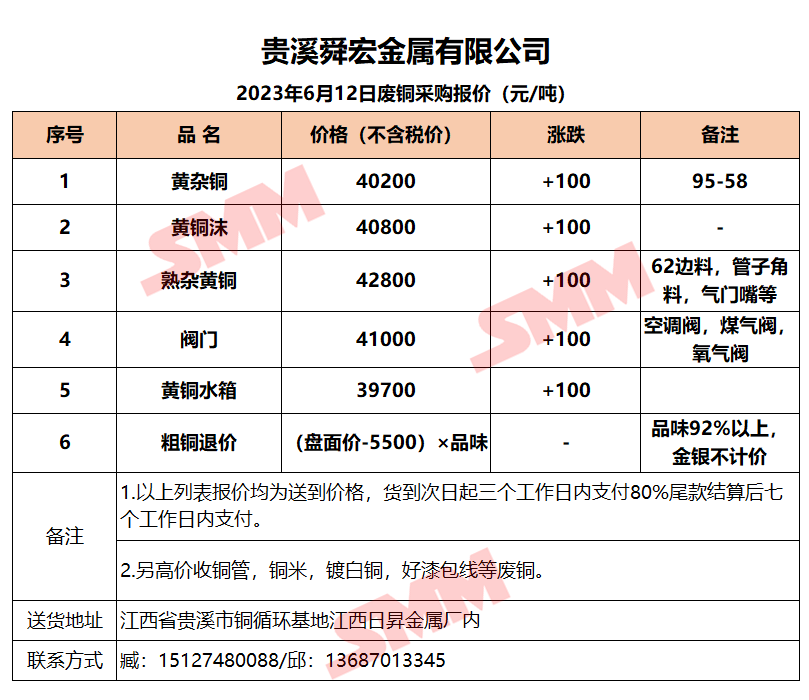 今日贵溪舜宏金属有限公司 ,废铜采购报价已更新,有货的朋友欢迎联系我们!