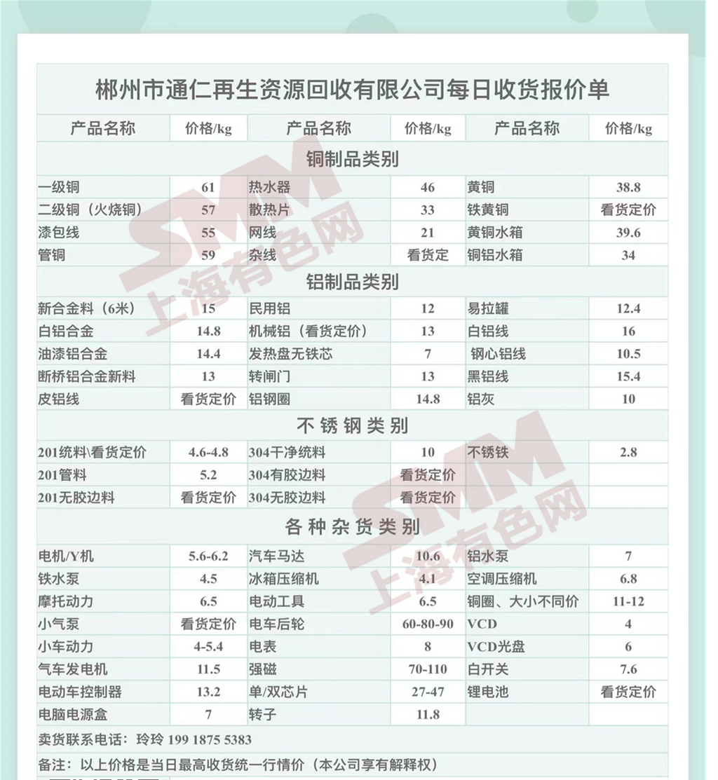今日郴州市通仁再生资源回收有限公司 废金属收购报价已更新,有货的朋友欢迎联系我们!