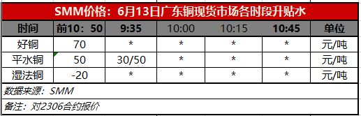 6月13日广东铜现货市场各时段升贴水(第一时段9:35)【SMM价格】