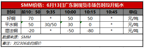 6月13日广东铜现货市场各时段升贴水(第三时段10:15)【SMM价格】
