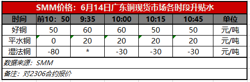 6月14日广东铜现货市场各时段升贴水(第四时段10:45)【SMM价格】