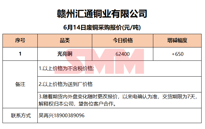 6月14日赣州汇通 废铜采购报价
