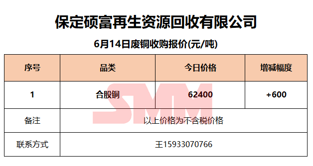 今日保定硕富 ,废铜收购报价已更新,有货的朋友欢迎联系我们!
