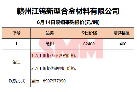 今日赣州江钨,废铜采购报价已更新,有货的朋友欢迎联系我们!