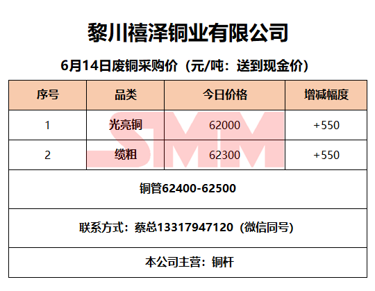 6月14日黎川禧泽铜业 废铜采购报价