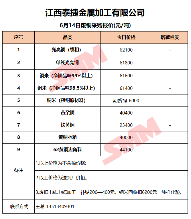 今日江西泰捷,废铜采购报价已更新,有货的朋友欢迎联系我们!