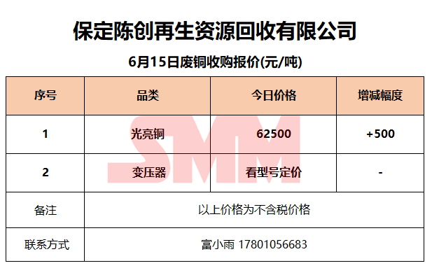 今日保定陈创再生资源,废金属收购报价已更新,有货的朋友欢迎联系我们!