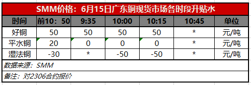 6月15日广东铜现货市场各时段升贴水(第三时段10:15)【SMM价格】