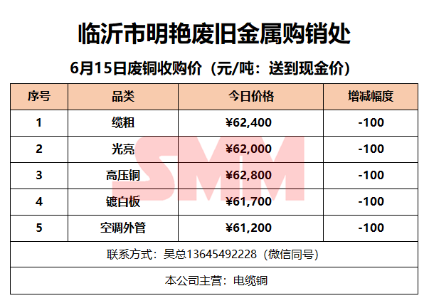 6月15日临沂明艳废旧金属 废铜收购报价